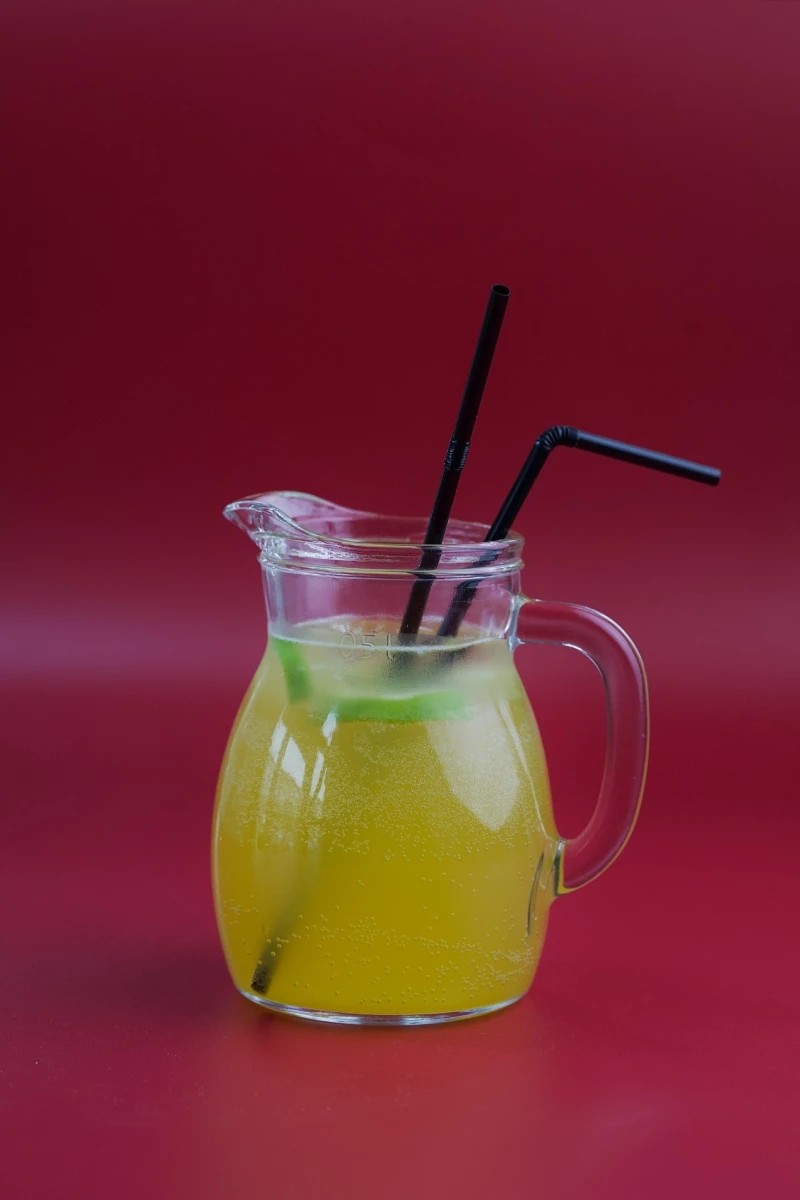 Соус маракуйя, сироп маракуйя, газированная вода, лед. Украшение: лайм, мята,