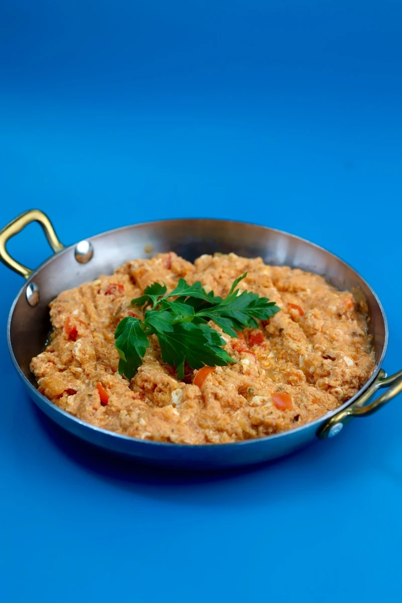 Турецкая яичница с овощами, специями и сыром